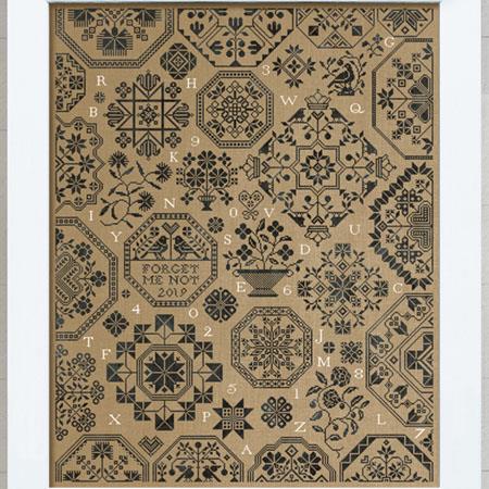 NOTE: The model DMC are listed above; however, choosing your own fabric and colors adds to the joy of this sampler. Color A (939) has 35,528 xs stitched over two using 2-ply. Color B (3865) has 2,272 xs stitched over one using 1-ply. Quantities above are based on 32 ct. fabric with these guidelines.
