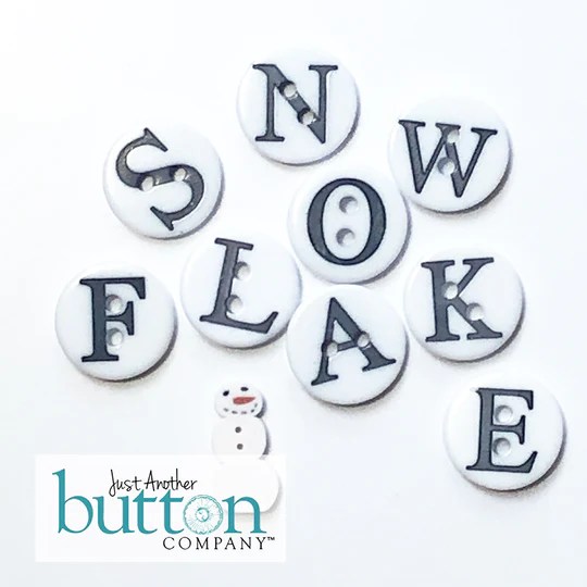 S-N-O-W-F-L-A-K-E and a snowman — buttons to embellish your needlework, quilting, etc.